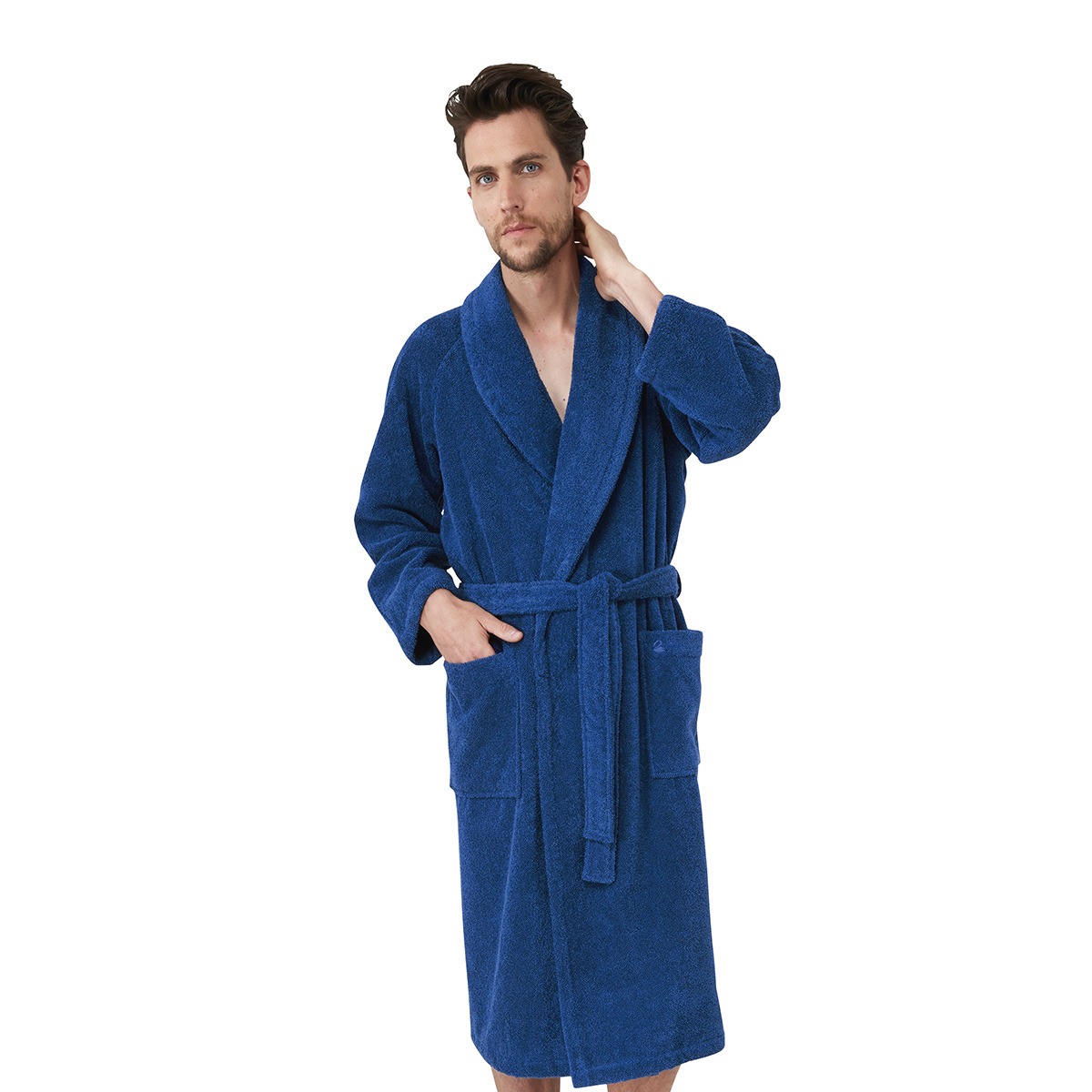 The Etoile bathrobe is an amazingly comfortable shawl collar unisex bathrobe which can also be used as a casual dressing gown. Made of extra thick luxurious cotton towelling, 83% Cotton, 17% Modal, 450gsm with patch pockets, available in a variety of colours.