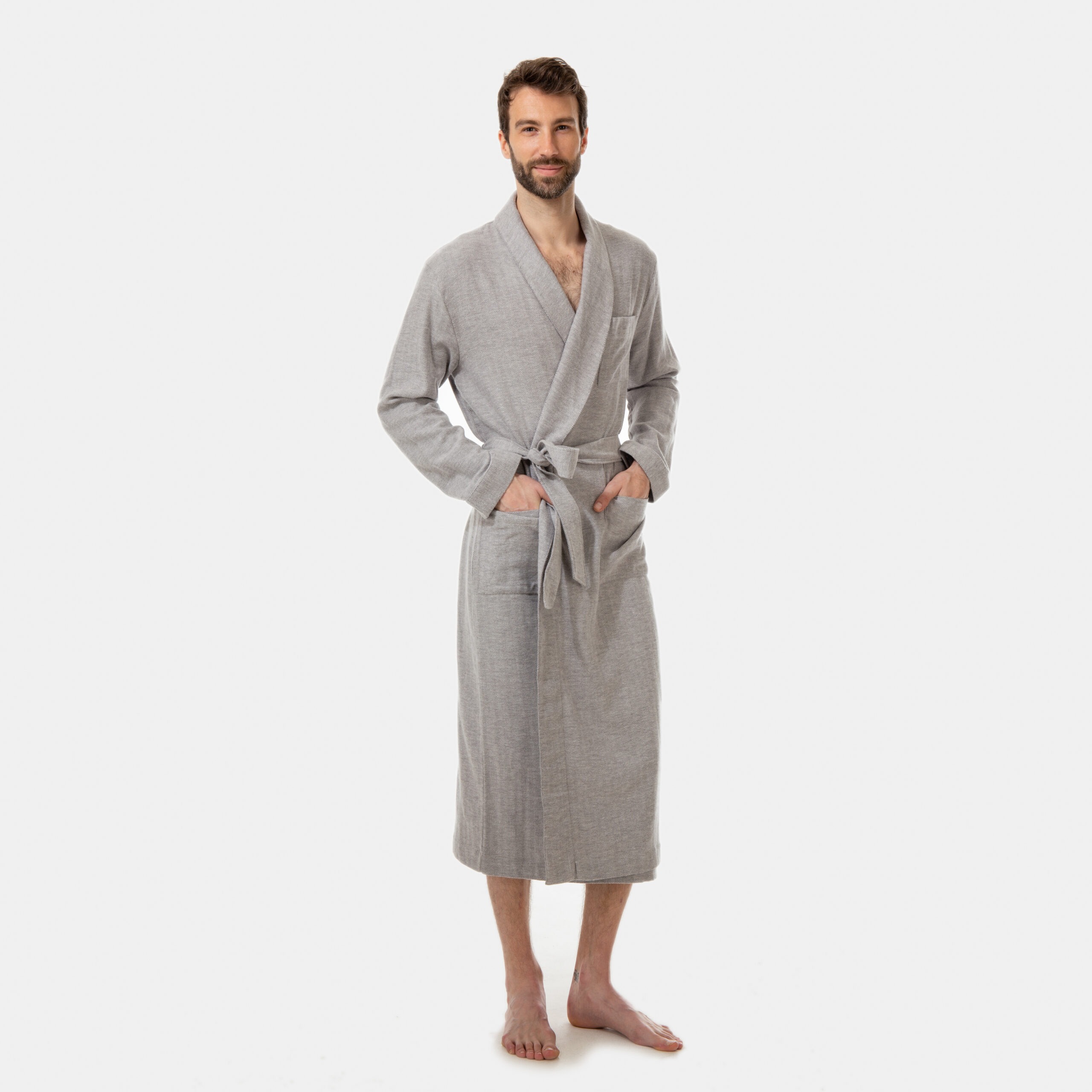Men’s Long Dressing Gown Asphalt/Stone (Woven)